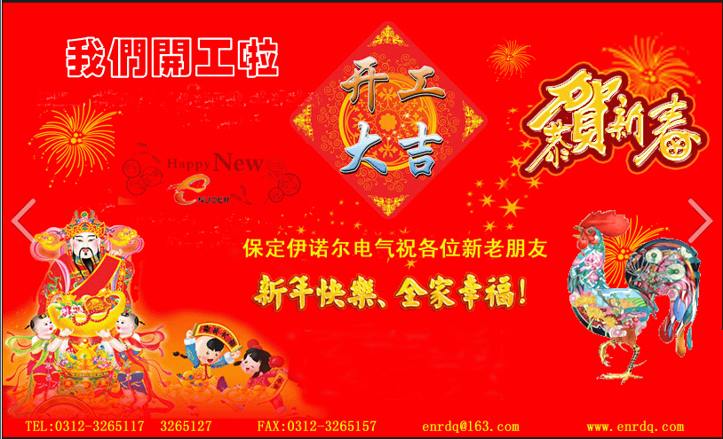 2017年2月4日,農歷正月初八,保定伊諾爾電氣正式開工迎客,歡迎新老客戶朋友們來電來函垂詢產(chǎn)品,新的一年愿與您攜手共進,和諧共贏!